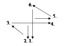 Г) Шестидольные размеры дирижируются шестью взмахами. В основе приема лежит четырехдольная фигура, в которой удваиваются движения вниз и вправо: