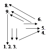 Д) Девятидольные размеры дирижируются девятью взмахами. В основе приема лежит трехдольная фигура, в которой утраиваются все взмахи: