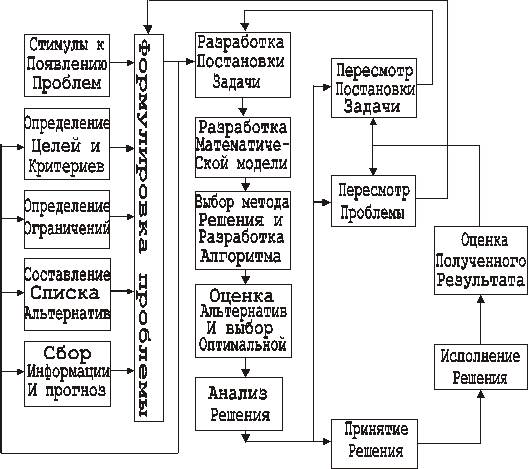 Процесс принятия решений является сложной итерационной процедурой. Структурная схема процесса принятия решений может иметь вид: