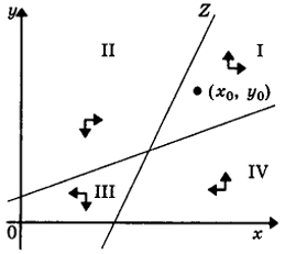 Из школьного курса алгебры известно, что прямая G делит плоскость (х, у) на две полуплоскости. Для всех точек одной
