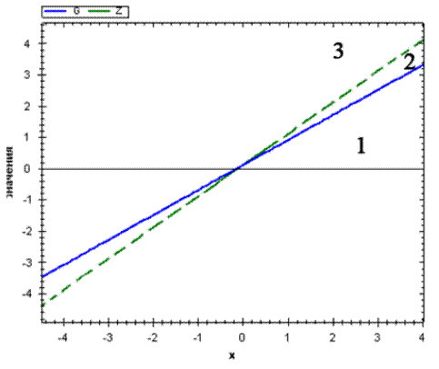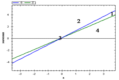 Легко показать, что если r > 0 и s > 0,то точка пересечения G и Z лежит в первом (см. рис.2) или третьем (рис.3) квадранте.