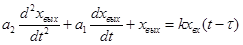 Описание объекта управления в динамике можно сделать с помощью дифференциального уравнения второго порядка с запаздыванием следующего вида: