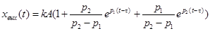 ), получим уравнение расчётной кривой разгона апериодического объекта второго порядка с запаздыванием: