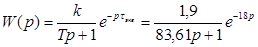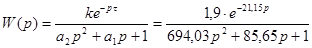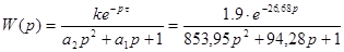 После определения всех коэффициентов дифференциального уравнения (1), перейдём к соответствующей ему передаточной функции, для чего уравнение (1) предварительно преобразуем по Лапласу, а затем найдём отношение изображения выходной величины объекта к входной (при нулевых начальных условиях), получим: