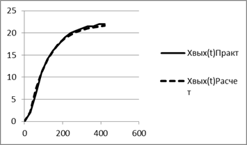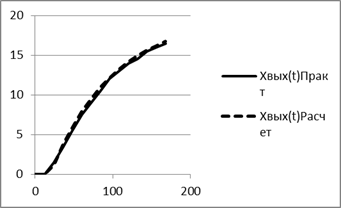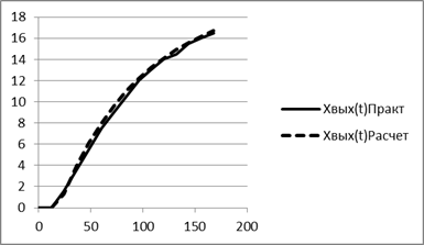 Задаем ступенчатое регулирование Хрег =67% (+10%), ждем, когда объект стабилизируется (Хвых (t)=const).
