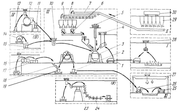 qi = 6…8 мин. – задолженность крана на заливку чугуна.