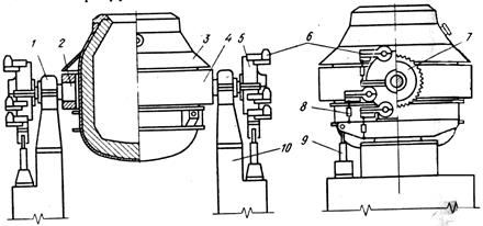 Наиболее широкое применение получили радиальные машины, отличающиеся от машин вертикального типа и с изгибом слитка меньшей высотой (рис.6) и повышенной скоростью литья.