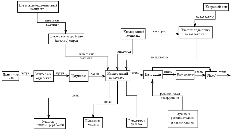 - выполнить схему технологических грузопотоков кислородно-конверторного комплекса;