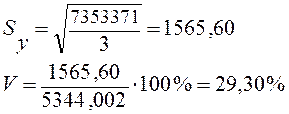 , значит, связь между признаками V и Y - умеренная, но с учётом погрешностей можно сказать даже слабая. Таким образом, вариация результативного признака у