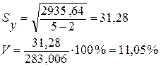 Данная разность доказывает правильность применения линейного уравнения корреляционной зависимости для связи Х и V.
