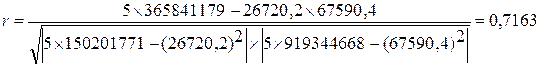 Рассчитаем линейный коэффициент парной корреляции: