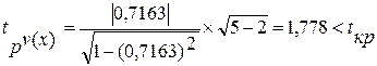 Однако следует отметить, что коэффициент корреляции для связи Х и V близок к единице, следовательно, распределение его оценок отличается от нормального или распределения Стьюдента, так как он ограничен величиной 1. В таких случаях более целесообразно использовать метод преобразования корреляции, предложенный Фишером, где для оценки надёжности коэффициента его величину преобразовывают в форму, не имеющую такого ограничения.