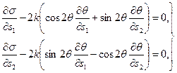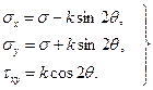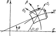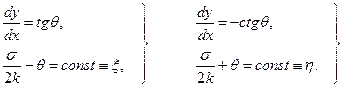1.3. Линии скольжения. Линия скольжения – линия, в каждой точке своей касающаяся площадки максимального касательного напряжения. Очевидно, что имеются два ортогональных семейства линий скольжения, характеризуемые уравнениями: