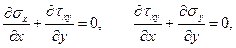 Сюда следует присоединить два дифференциальных уравнения равновесия (объемные силы отсутствуют):