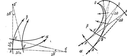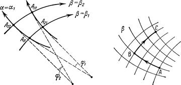 7) Будем передвигаться вдоль некоторой лини скольжения; тогда радиусы кривизны линий скольжения другого семейства в точках пересечения изменяются на пройденные расстояния (вторая теорема Генки).