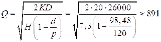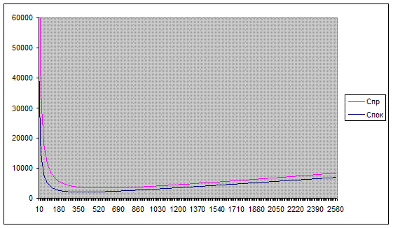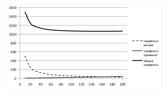 Выберем тот размер заказа, который минимизирует общие издержки. Из