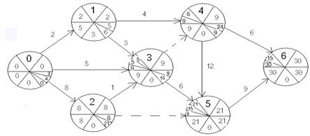 4.Рассчитайте секторным методом представленный сетевой график. Определите критический путь.