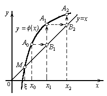 Геометрически метод итерации может быть пояснен следующим образом. Построим на плоскости хОу