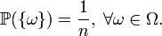 Вероятность, вообще говоря, можно определять произвольно. Часто, однако, нет причин считать, что один элементарный исход чем-либо предпочтительнее другого. Тогда естественным способом ввести вероятность является: