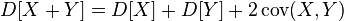 - В частности, D [X 1 + ... + Xn ] = D [X 1 ] + ... + D [Xn ] для любых независимых или некоррелированных случайных величин, так как их ковариации равны нулю;