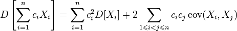 - Для дисперсии произвольной линейной комбинации нескольких случайных величин имеет место равенство: