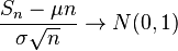 ). - Так как функция распределения стандартного нормального распределения непрерывна, сходимость к этому распределению эквивалентна поточечной сходимости функций распределения к функции распределения стандартного нормального распределения. Положив
