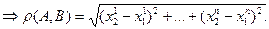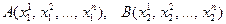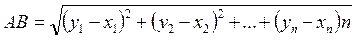 Пусть в ПДСК Оgi даны две точки со своими координатами А(х1 ,…, х n ) и В(у1 ,…, у n ). Вычислить расстояние между этими точками.