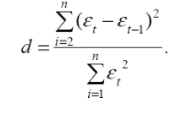 Между критерием Дарбина–Уотсона и коэффициентом автокорреляции остатков первого порядка имеет место следующее соотношение: