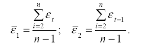 Коэффициент автокорреляции остатков первого порядка определяется как