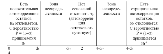 Алгоритм выявления автокорреляции остатков на основе критерия Дарбина–Уотсона следующий. Выдвигается гипотеза Н0 об отсутствии автокорреляции остатков. Альтернативные гипотезы