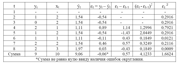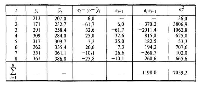 Выявить на уровне значимости 0,05 наличие автокорреляции в остатках для временного ряда.