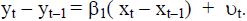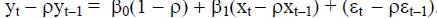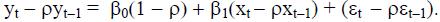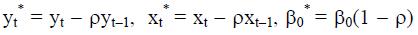 Однако способ вычисления y, х приводит к потере первого наблюдения (если мы не обладаем предшествующим ему наблюдением). Число степеней свободы уменьшится на единицу, что при больших выборках не так существенно, но при малых выборках может привести к потере эффективности. Эта проблема обычно преодолевается с помощью поправки Прайса-Виистена: