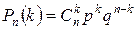 число сочетаний из п элементов по k , q=1- p . В рассматриваемом случае: