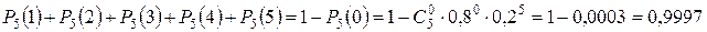 г) вероятность появления события хотя бы один раз в 5 испытаниях: