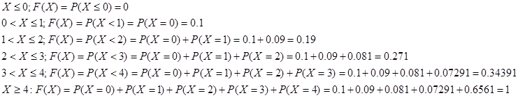 Х – дискретная случайная величина. Найдем функцию распределения F(x)=P(X![]()