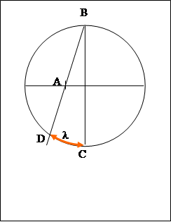 · другой стороной угла является луч, проходящий через точку D, лежащую на окружности и отстоящей от точки С на расстоянии, равном долготе меридиана