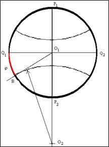 , дуга которой и будет отображать желаемую линию параллели.