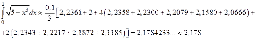 Вычислить данный интеграл с помощью формулы Симпсона, разбив отрезок интегрирования на 10 частей. Вычисления производить с округлением до четвертого десятичного знака.