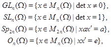 Классические матричные группы - общая, специальная, симплектическая и ортогональная :