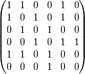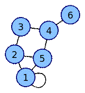 Ниже приведён пример (рис 1.) неориентированного графа и соответствующей ему матрицы смежности A. Этот граф содержит петлю вокруг вершины 1, так что, в зависимости от конкретных приложений, элемент a11 может считаться равным либо единице (как показано ниже), либо двум.