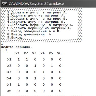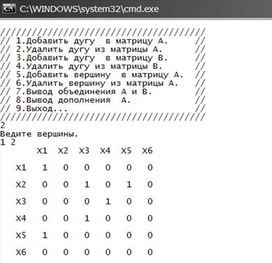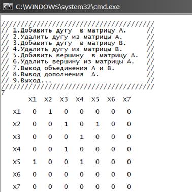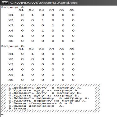 Рисунок B5–Вывод матрицы А , B и операций над графами.