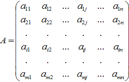 Матрица – множество чисел, образующих прямоугольную таблицу, которая содержит m-строк и n-столбцов. Для обозначения матрицы используется надпись: