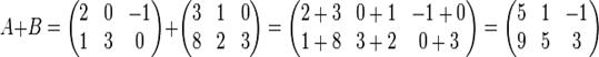 Суммой двух таких матриц А и В называется матрица С, элементы которой равны сумме соответствующих элементов матриц А и В. Символически будем записывать так: А+В=С.
