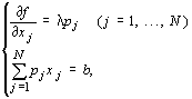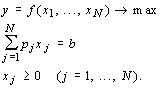 Предположим, что факторы ( x 1 , ..., x N ) могут быть закуплены по ценам ( p 1 , ..., p N ), а объем имеющихся средств для приобретения составляет b (руб.). Тогда соотношение, описывающее множество допустимых наборов факторов, имеет вид: