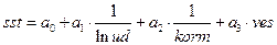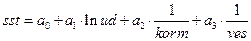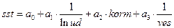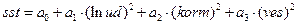 . reg sst lnud lnud2 korm korm2 ves ves2