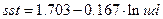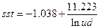 . Это уравнение значимо по F-критерию Фишера, и параметр при переменной lnud1 и константа значимы по t-критерию Стьюдента. 64,03 % суммы квадратов отклонений переменной sst от среднего значения объясняется переменными модели.
