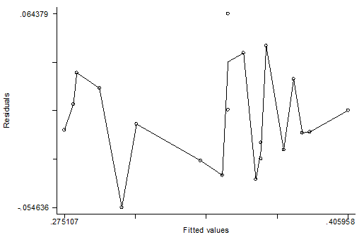 Residual | .017320581 18 .000962254 R-squared = 0.6403