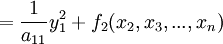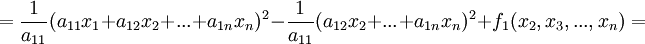 - хотя бы один из коэффициентов aii при квадратах отличен от нуля. Не нарушая общности, будем считать a11 ≠0 (этого всегда можно добиться соответствующей перенумерацией переменных);