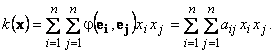 Пусть e1 , ..., en — базис в L. И пусть для вектора x из L задано разложение x = x1 ·e1 +x2 ·e2 + ...+ xn · en . Тогда для квадратичной формы k(x) справедливо представление