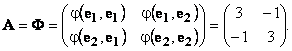 = (0, 1) — базис в R2. Вычислим матрицу A квадратичной формы. Поскольку симметричная билинейная форма φ(x, y) = φ(x1